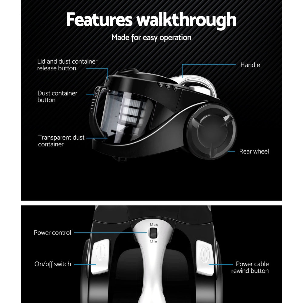 Devanti 2200W Bagless Vacuum Cleaner Black