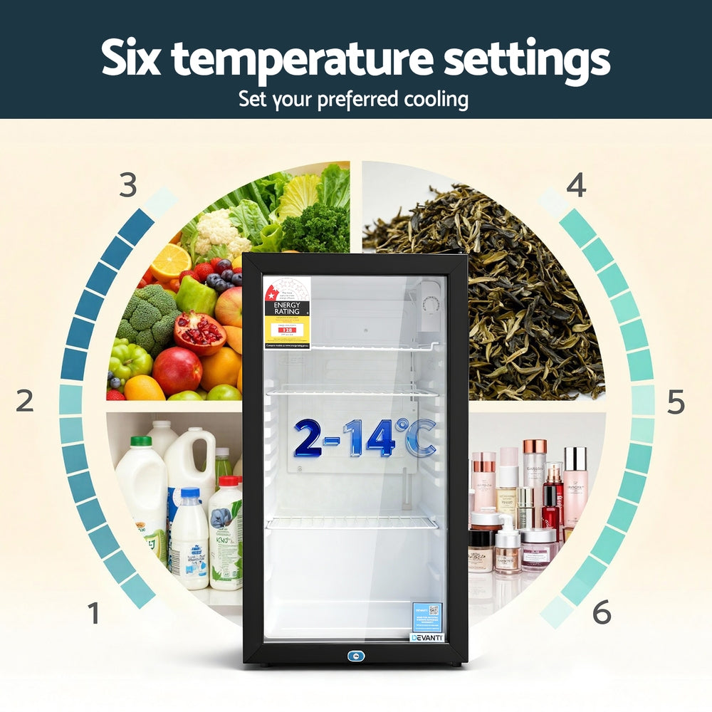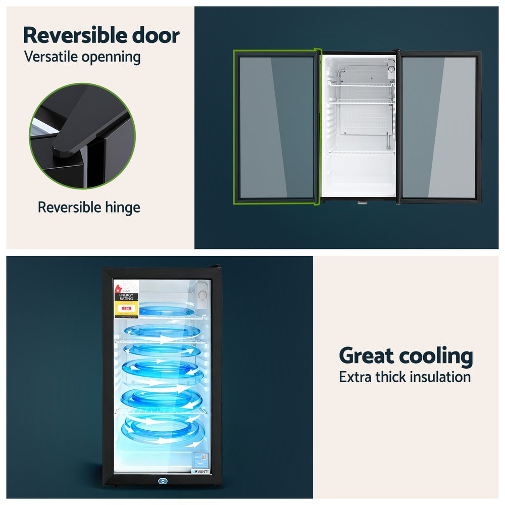 Devanti 78L Bar Fridge Glass Door Mini Fridge Countertop Cooler Black