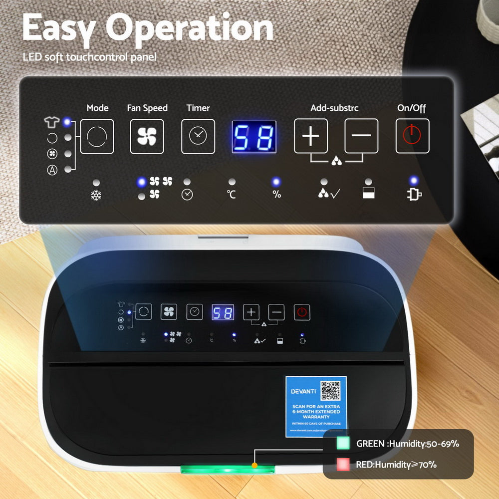 Devanti Dehumidifier 20L Air Purifier White